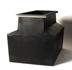 Al igual que la arqueta de tanque prefabricada, está compuesta de poliureatano reforzado con fibra de vidrio.